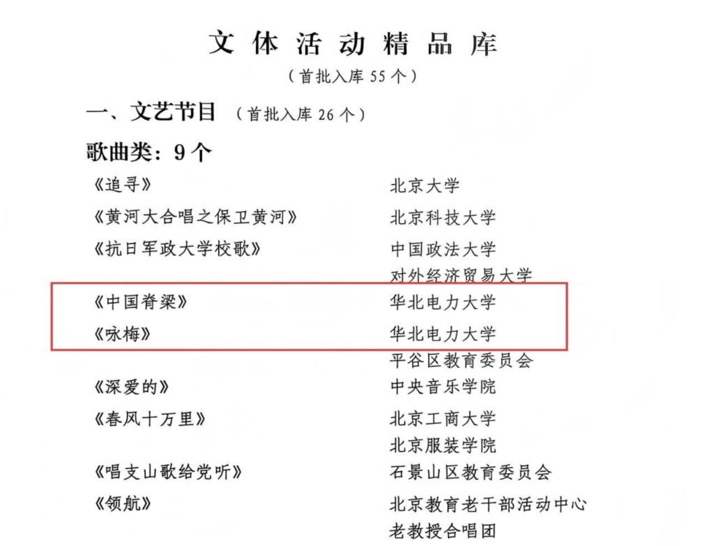 我校离退处工作处申报的歌曲《中国脊梁》、《咏梅》,健身操展示等三项作品,入选北京教育系统离退休干部首批文化活动资源库。这是北京教育老干部活动中心系统梳理并整合长期积累优质资源,创新构建的包括夕拾讲堂、骨干队伍人才等三大特色资源库之一。